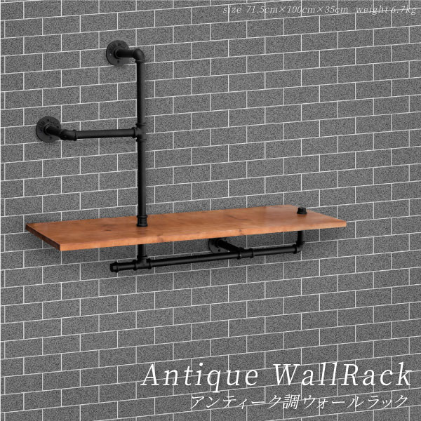 アンティーク調 家具 ウォールラック シェルフ 収納棚 ハンガーラック 組立式 壁付け 無垢木製 バッグ 鞄 靴 小物 帽子 本 写真 収納 整理 寝室 リビング シェルフ オシャレ レトロ 北欧 男前インテリア インダストリアル 大型送料 □ _87231